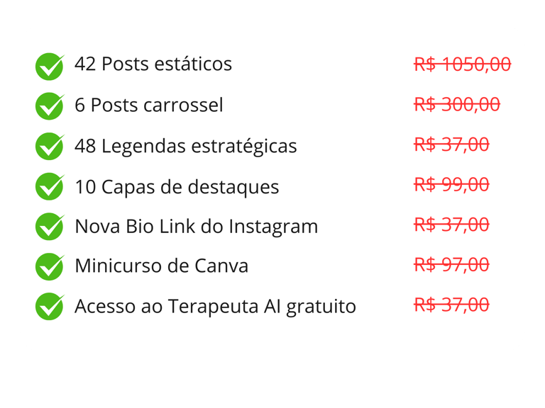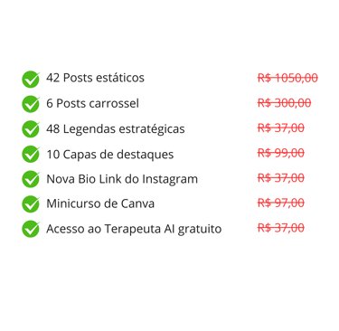 Mas hoje, você tem acesso ao Insta Pack Terapias junto com todos os bônus por apenas...